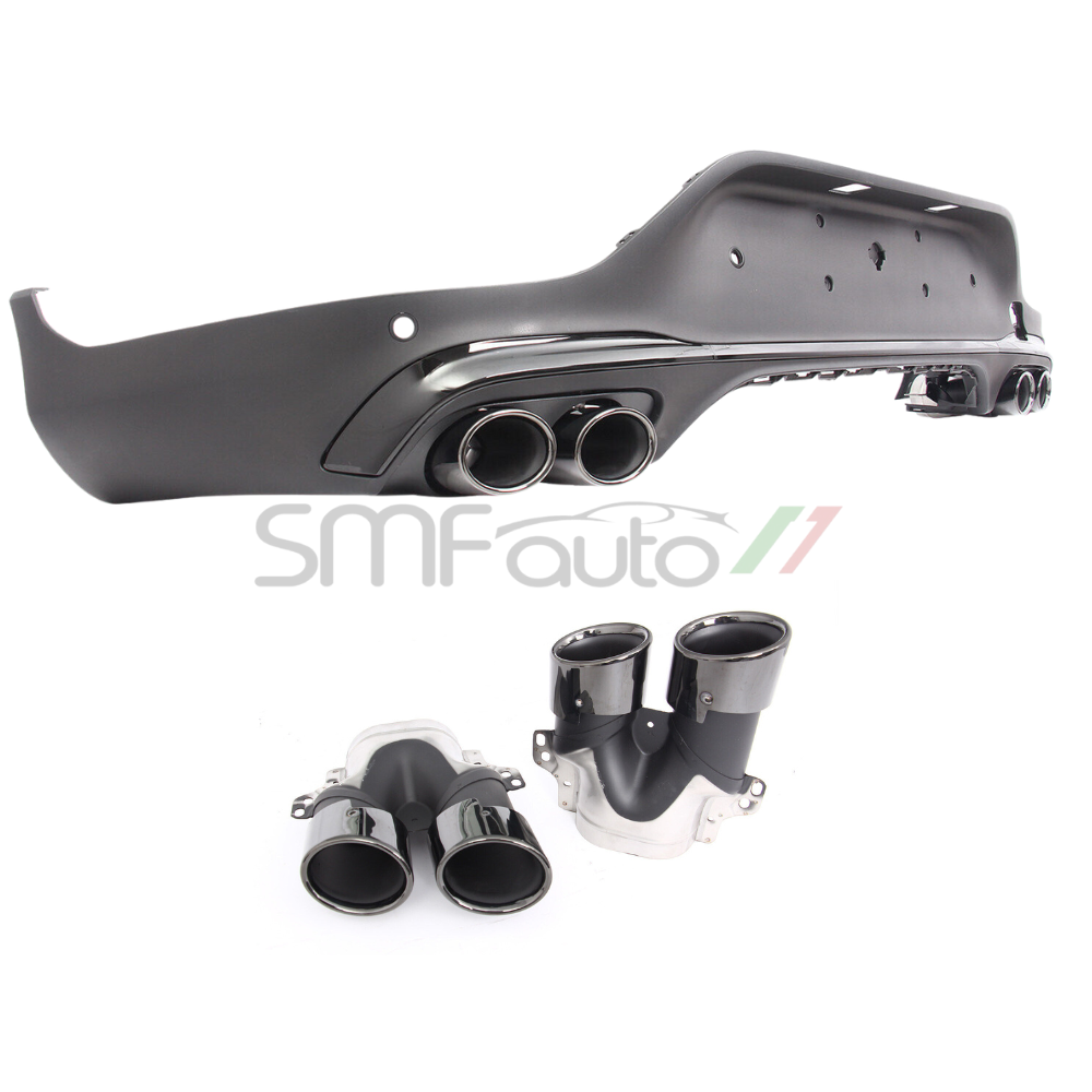 Rendi la tua Mercedes GLC Coupé C253 (2015–2022) più sportiva con questo diffusore posteriore stile GLC 43 AMG Restyling, progettato per gli allestimenti Premium / AMG Line. Realizzato in ABS nero lucido con terminali in acciaio inox neri o cromati, si integra perfettamente con il paraurti originale donando un look più dinamico alla vettura.
